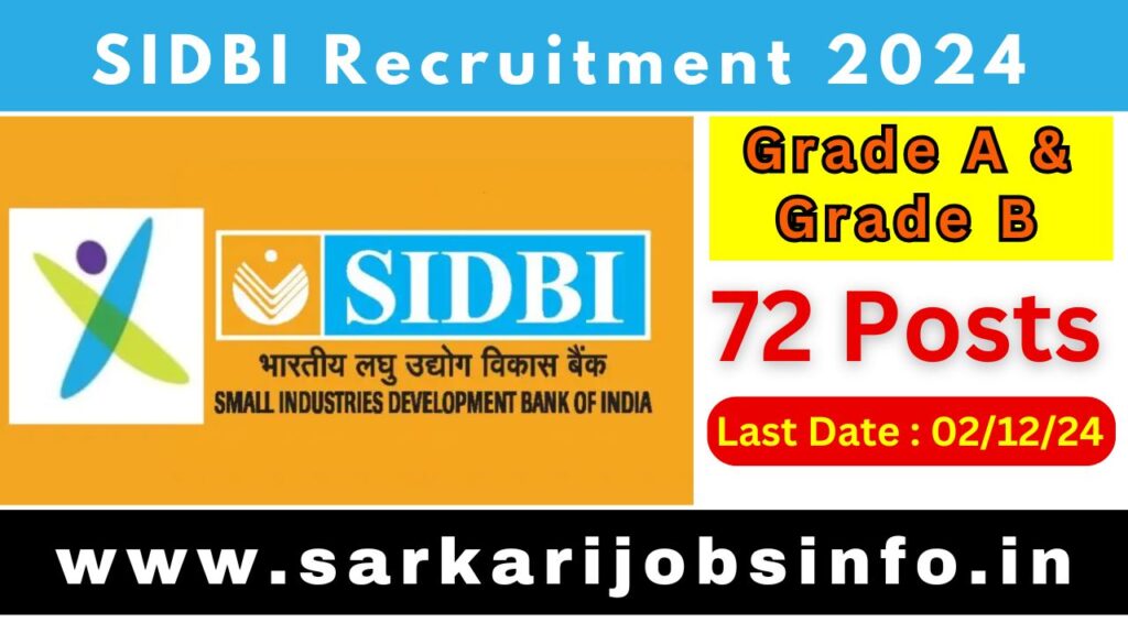 Small Industries Development Bank of IndiaSIDBI Bank Recruitment 2024 Grade A & B Apply Online For 72 PostsSIDBI Recruitment 2024Sarkari Jobs Info |